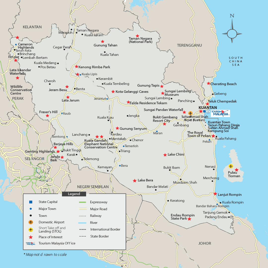 Air-conditioned express buses to Pahang can easily be obtained from Kuala Lumpur. Buses depart from the Bandar Tasik Selatan bus terminal. Pahang is also well-connected to the neighbouring states of Kelantan and Terengganu.