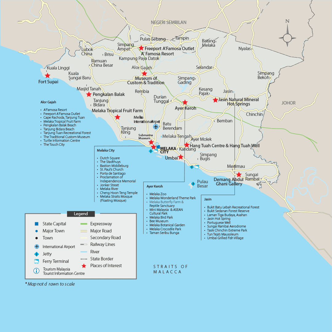 The North-South Expressway runs through the state and provides easy access to the places of interest within the city, especially places that are located near the Simpang Ampat, Ayer Keroh and Lipat Kajang exits. Melaka Sentral, the new bus and taxi terminal in Peringgit, is situated about 6km from the city. The terminal also houses a shopping arcade and bazaar.