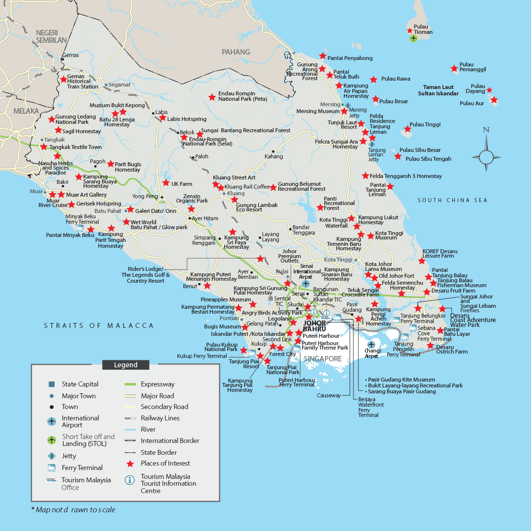 Johor derives its name from ‘Jauhar’, an Arabic word that means precious stones. The southern gateway to Malaysia, Johor is linked to Singapore via the Causeway. The state has an international airport, a dynamic economic growth corridor and three major ports. It is also where the southernmost tip of Asia, Tanjung Piai, is located. The state has long enthralled visitors with its diverse range of attractions, ranging from ancient rainforests, pristine islands to world-renowned golf courses, family theme parks and shopping malls. The state capital, Johor Bahru, is famous for its historical buildings and impressive architecture. Let Johor be your gateway to a world of fascination and adventure.